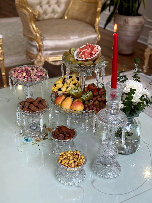 سرویس پذیرایی ۶ تکه بلور باکارا مدل افسون - شامل دوطبقه، شمعدان و پیاله‌های آویزدار